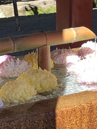 手水のところに大輪の菊が浮かべられてる(´▽`*)ステキ…